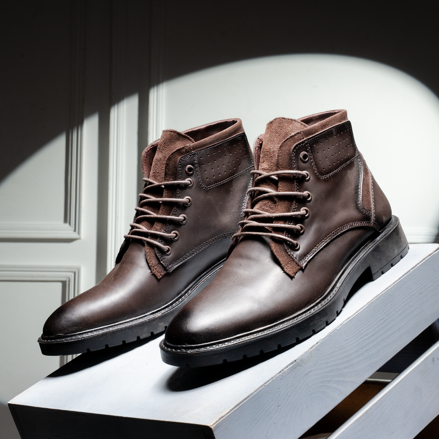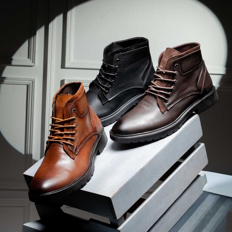 هاف بوت رجالي خامة جلد طبيعي 100% بتقفيل ممتاز وجودة عالية. تصميم مريح وعصري مناسب للخروجات اليومية ويمنحك ثبات وراحة في المشي.