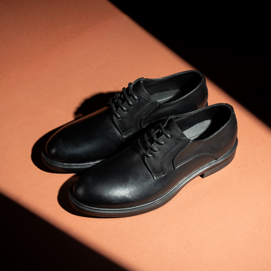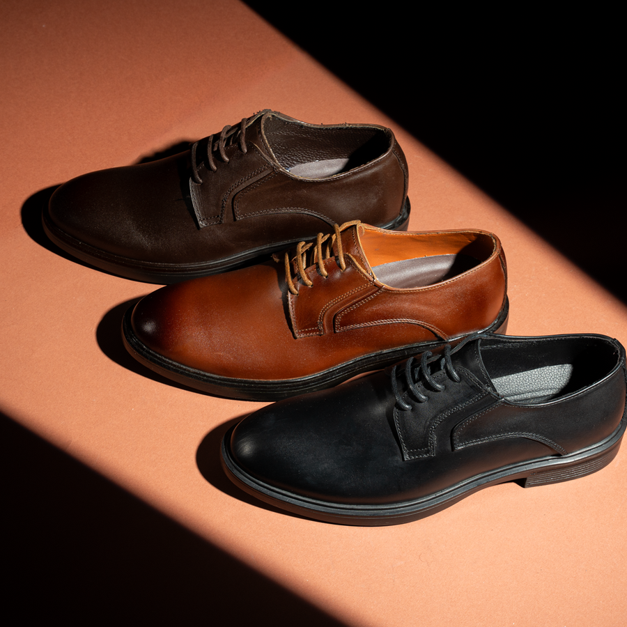 حذاء رجالي BO10 جلد طبيعي بتصميم كلاسيك أنيق مع نعل رابر مرن وفرش طبي مريح. مناسب للعمل والمناسبات والاستخدام اليومي.