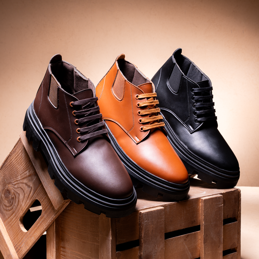 هاف بوت رجالي أنيق ومتين مصنوع من خامة جلد مستورد فاخرة ببطانة داخلية مريحة تحافظ على دفء القدم نعل قوي مضاد للانزلاق وتصميم عملي يناسب الشتاء