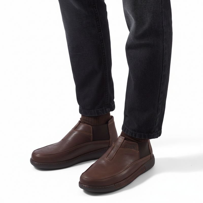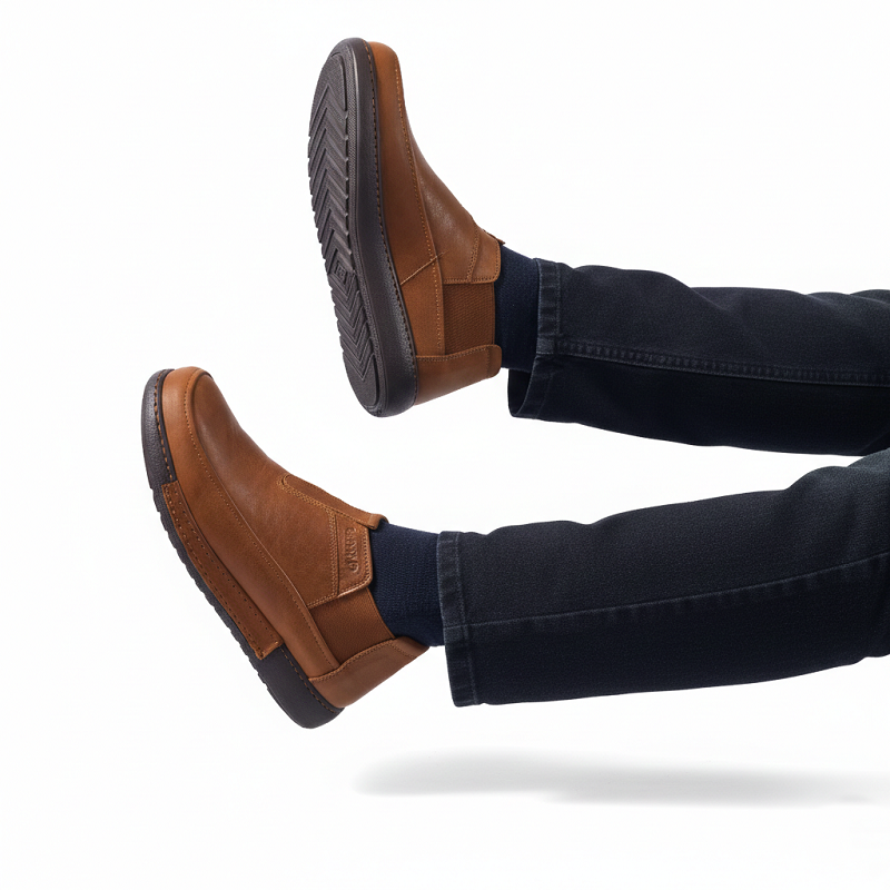الخامة: جلد طبيعي بقري عالي الجودة، طري ومسامي لراحة القدم
